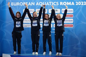 Women's 4x100m Freestyle Relay podium wave Rome 2022