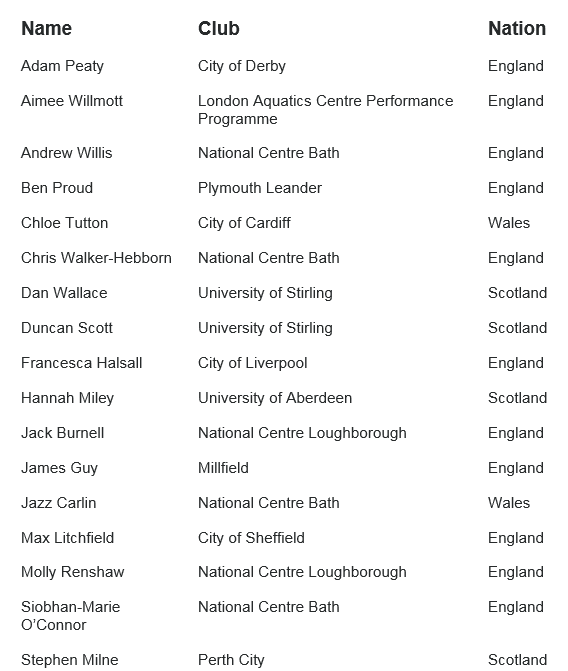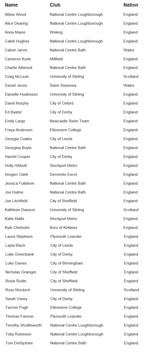 British Swimming's Head of Elite Development Tim Jones said: "The past year has been great with some strong performances from a number of our young and talented swimmers. As we begin the new quadrennial we have used this opportunity to make some obvious investments into a new generation of athletes with a clear focus on Tokyo and beyond.